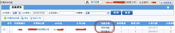 服務(wù)商端:400號(hào)碼管理 >> 號(hào)碼管理 >> 其它管理 >> 功能開通