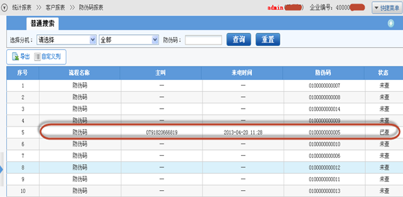(9)在統(tǒng)計(jì)報(bào)表 》》客戶報(bào)表 》》 防偽碼報(bào)表中可查看到已;